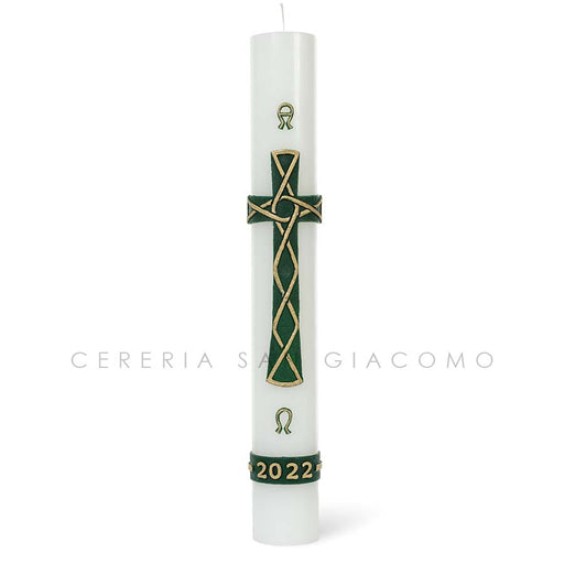 Cero Pasquale in cera bianca completo di immagini in cera in rilievo "Croce Verde Intrecciata"- Prezzo regolare